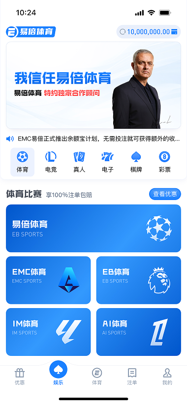 每周于【易倍体育】【EMC体育】【EB体育】场馆投注指定赛事,享指定场馆总负盈利100%全额包赔!本活动无需申请,赛事结束12小时后自动结算包赔彩金。详情请查看官网活动页面。